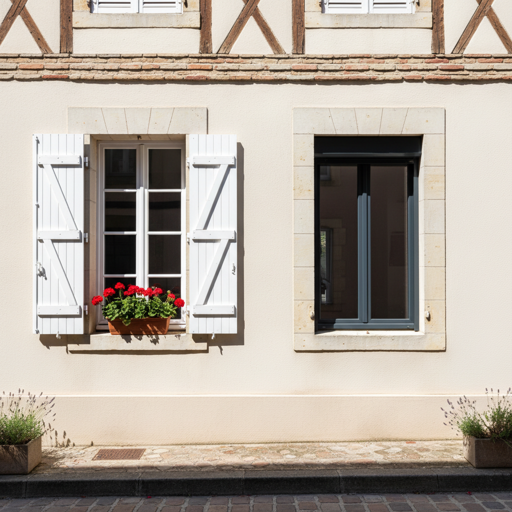 Le bois-alu est particulièrement pertinent en rénovation de bâtiments classés ou en zone protégée (périmètre ABF), où l'aspect extérieur doit respecter des contraintes architecturales. Le capotage alu peut être laqué dans la couleur imposée par l'architecte des Bâtiments de France.